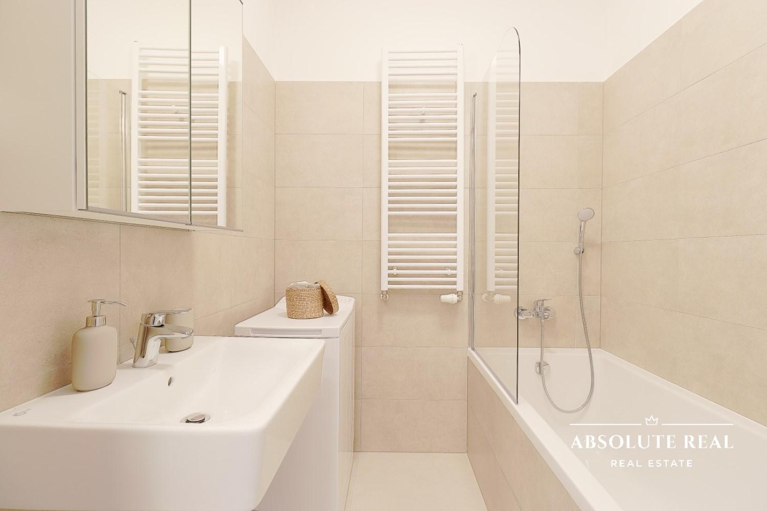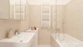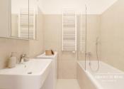 - Kúpeľňa: vaňa, práčka Whirpool, rebríkový radiátor