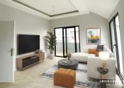 Dispozícia 2: 1x kuchyňa s obývačkou, 3x spálňa, chodba, kúpeľňa s WC, samostatné WC, terasa (23 m2) a balkón